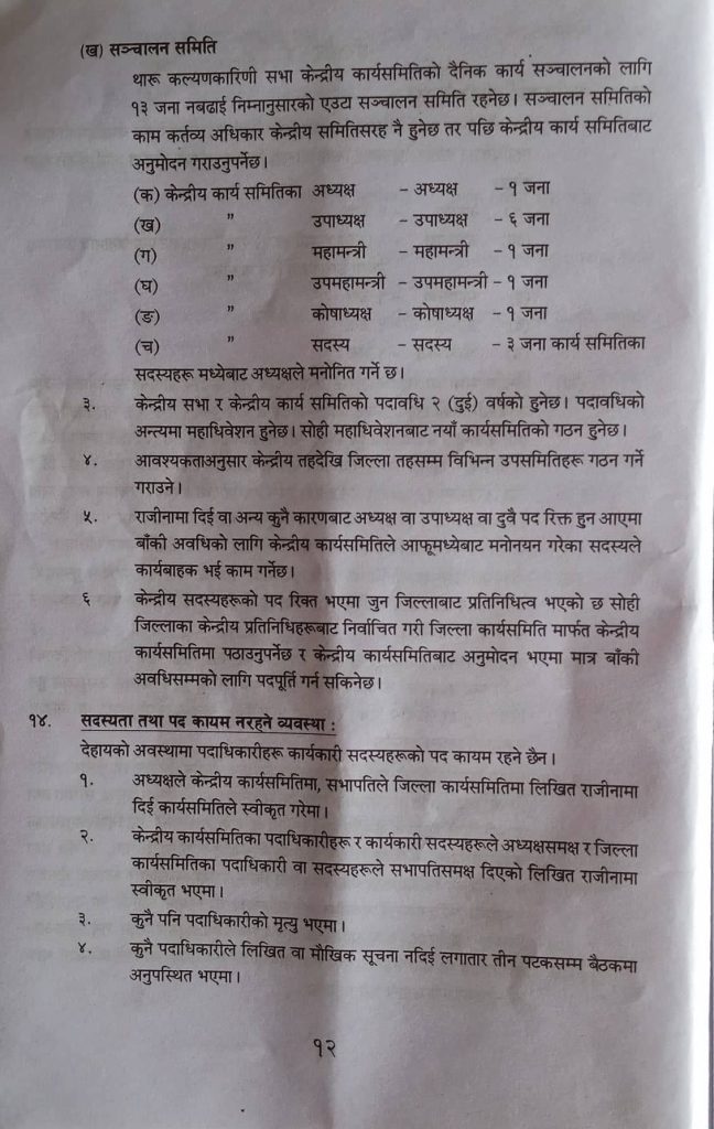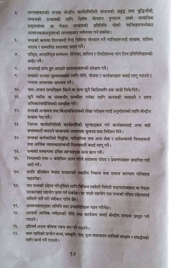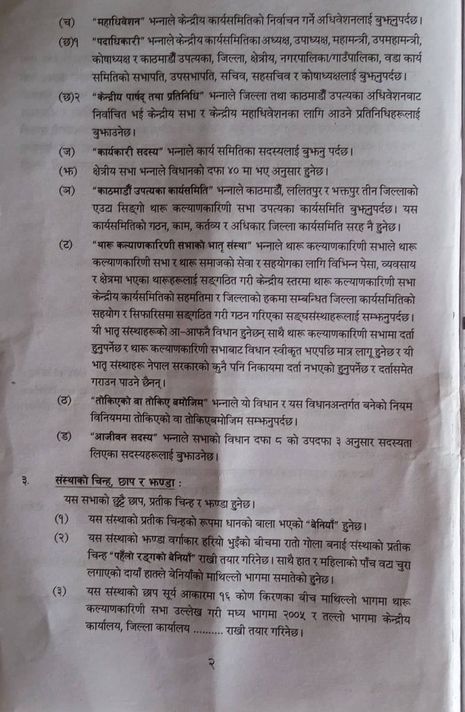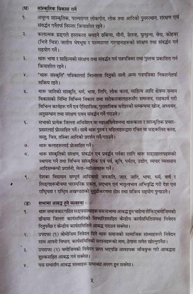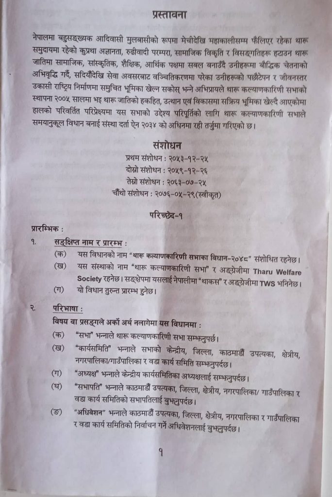 थारु कल्याणकारिणी सभाको २२औ अधिवेशनबाट पारित विधान